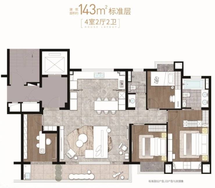 143㎡四室两厅两卫(高层,6.8米横厅,中西双厨)