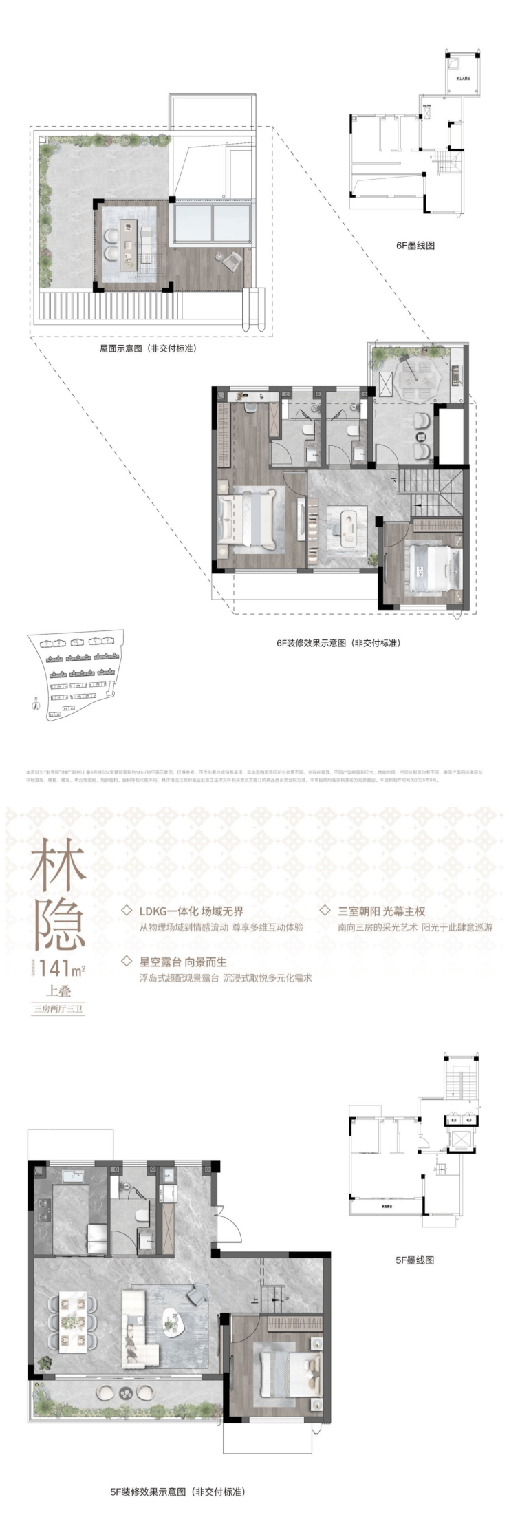 社区内部:规划“五重归家礼序、十园三巷六芳”,营造塔尖栖居仪式感,创新设计结构空腔、星空露台、四季花园,提升居住体验
