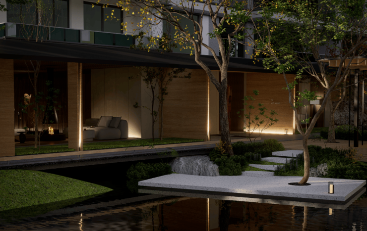 半岛园林式造景,与江河相得益彰,形成出入皆臻境的江河生活,10大丛林+度假场景体系化落位,如水流动线相连,将生活的本真意义还原。