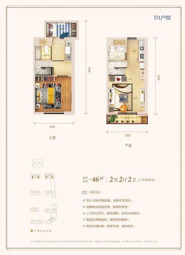 ‌46㎡平层‌:不通燃气,单价约2万元/㎡,总价78万起,配置独立阳台