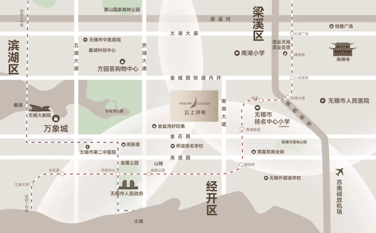 路网:紧邻南湖大道、快速内环南、金石路,10分钟通达市中心,15分钟抵无锡东站