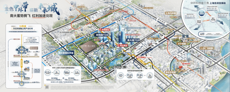 项目直线距离中环线仅约3.2公里,这种"近而不临"的距离既快速接驳内环高架路网,又避免了紧邻主干道带来的噪音干扰