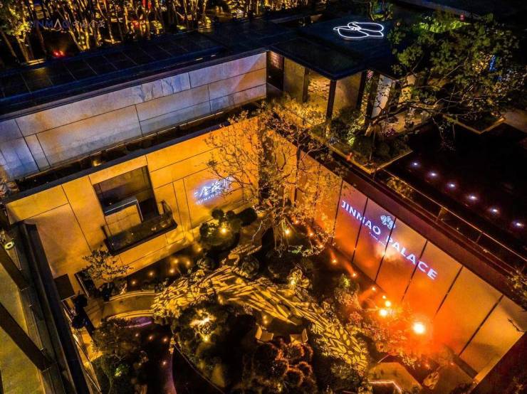 约109米南府门,配备36米前广场、手工金属太湖石雕塑及120年双生香樟树(耗资百万移植)