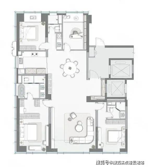 大平层:190㎡(四房两厅三卫)、220㎡(四房两厅三卫)、249㎡(四房两厅三卫)