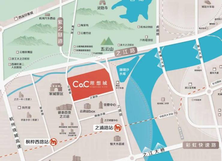 项目位于宋城旁,九溪玫瑰园正南面,直面一线钱塘江景,背靠西湖群山。之江是继钱江新城、奥体之后备受瞩目的价值高地,项目所处区位恰是融合“三轴会一心”的之江新城CAZ中央活力区。