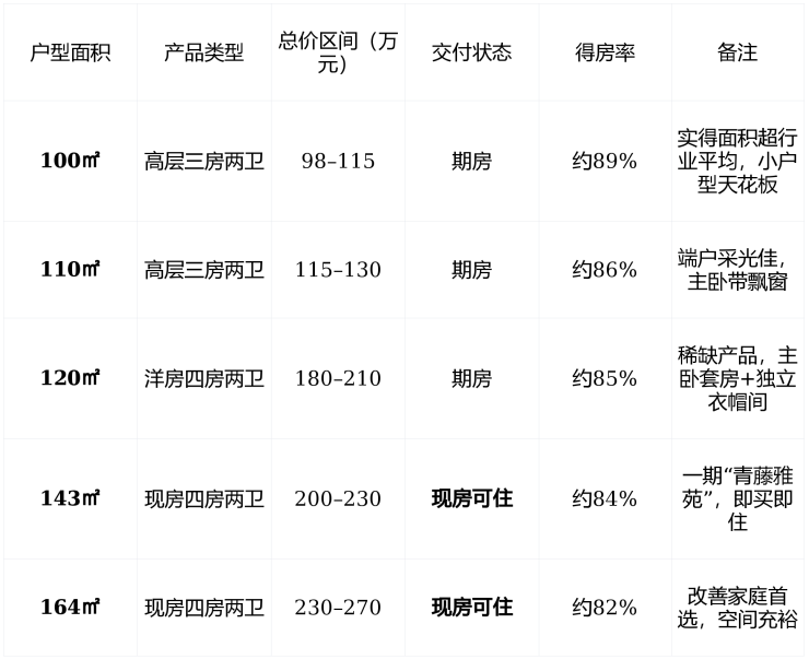 ✅ 温馨提示 : 120㎡洋房 为稀缺产品,仅2栋,建议优先锁定南向、低楼层; 100㎡户型 性价比极高,适合年轻家庭或人才补贴群体。