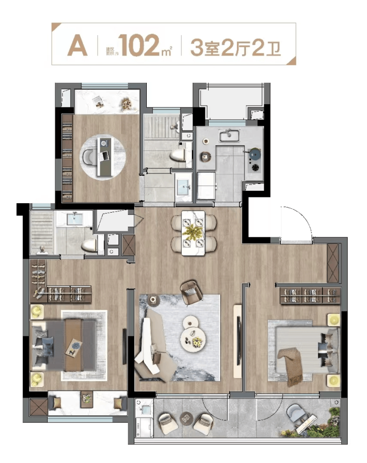 改善家庭:115㎡三房两卫,功能分区合理,适合三代同堂;