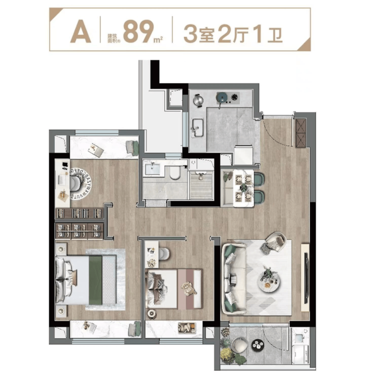 首置群体:89㎡小三居总价160万起,首付约48万元,月供压力小;
