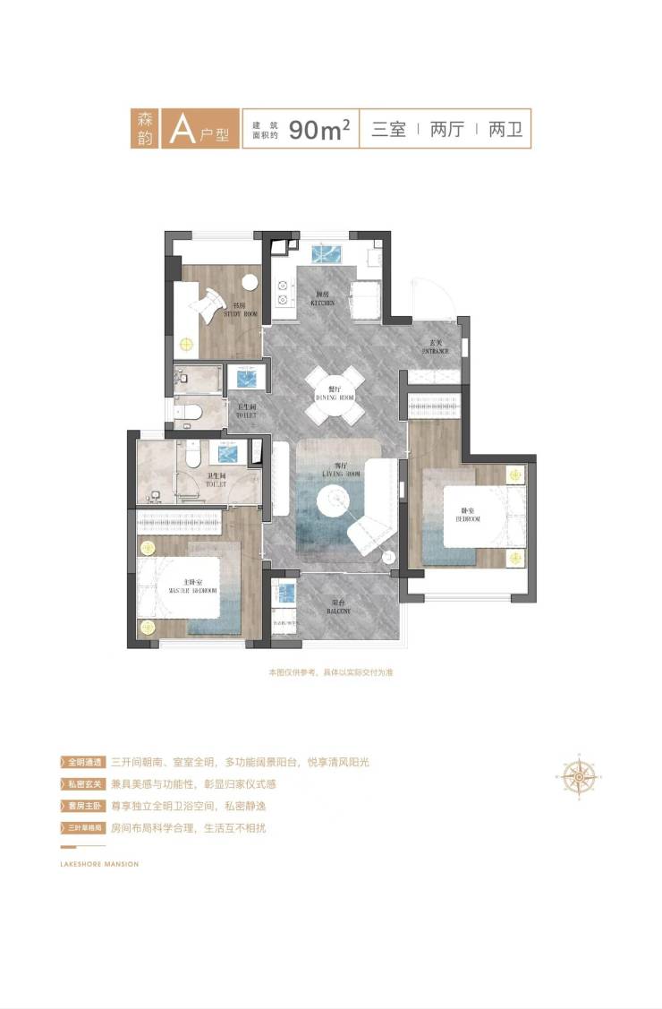 所有户型均采用"实用主义"设计理念,多开间朝南、南北通透,户型方正,空间利用率高