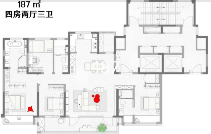 户型配置:建面约155/185/240㎡,全系大平层