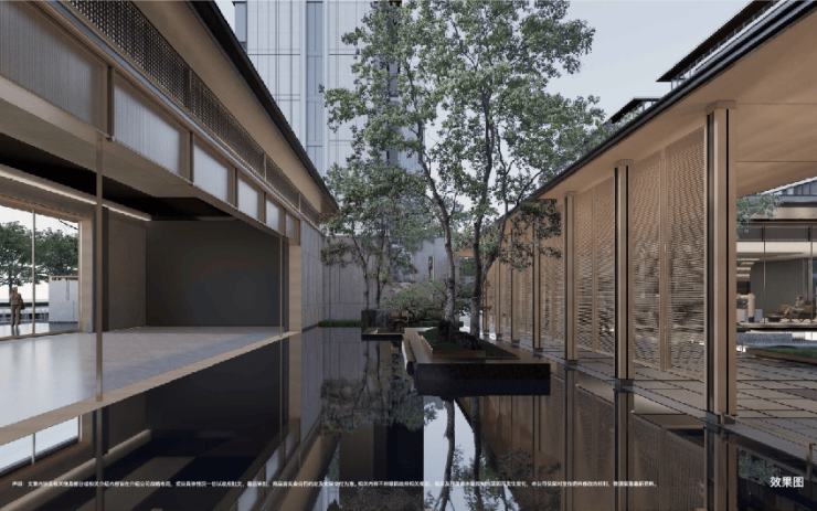 在社区景观的打造上,以江南古典园林为蓝本,汲取宋氏美学中“引、礼、廊、趣、赏、院”六大设计元素,园林遵循“一园三堂”的手法,打造可行、可塑、可游、可居的东方意境,营造繁华中的栖心之所。
