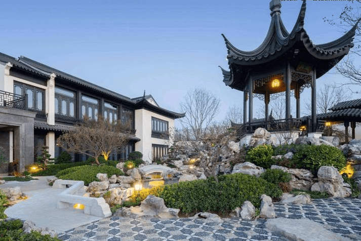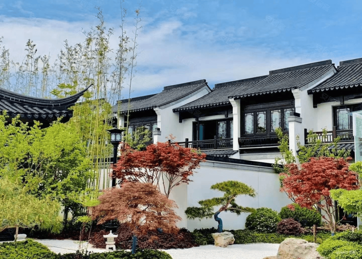 徽派风格粉墙黛瓦,配星空露台、退台花园,采用香山帮非遗园林工艺
