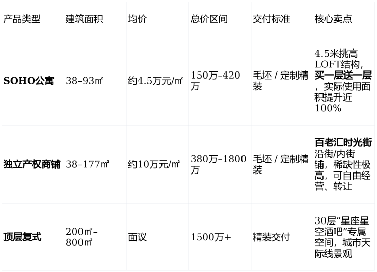 项目以“商业+SOHO”双轨产品切入,定位为 苏州工业园区唯一可售的小面积独立产权商业资产 ,对标上海陆家嘴、香港中环的商务生态模式,是低门槛资产配置与精英社交圈层的融合体。