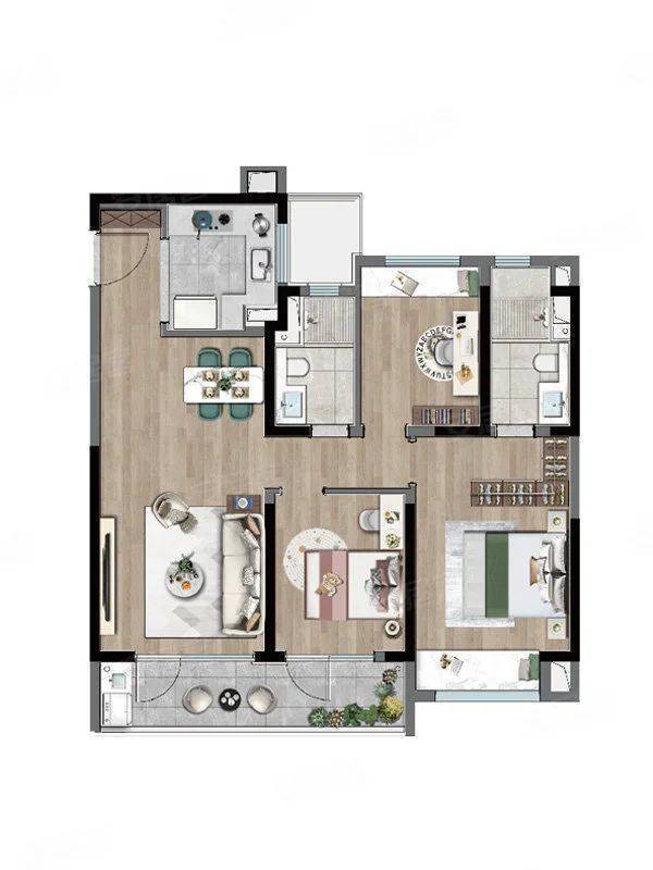 3室2厅2卫1厨, 建面115平米