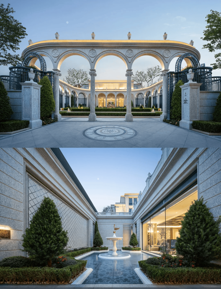 券柱画廊:以古典拱廊串联空间,营造欧洲庭院的仪式感;
