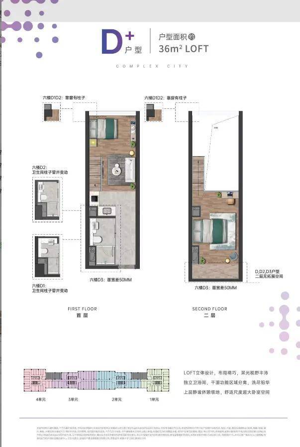 户型面积:29-51㎡,精装样板展示区有29㎡Loft、45㎡Loft、50㎡Loft