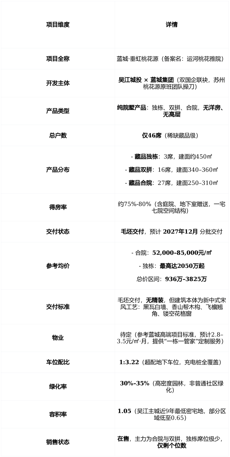 46席藏品级中式合院,藏在吴江老城芯 ,垂虹桥畔、运河之滨,蓝城+吴江城投联袂打造,毛坯交付,容积率仅1.05,真正实现“出门是千年烟火,归家是江南院落”的终极改善生活。