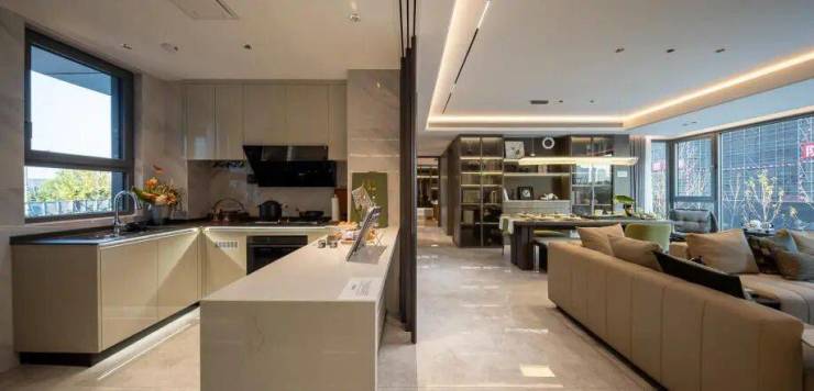 上源府户型设计以人本关怀为核心,全系采用LDKB一体化设计,打破传统空间界限,使厨房、餐厅、客厅与阳台相互连通,极大地促进了视线交融、空气对流和采光优化,赋予空间开阔感与通透感;部分户型采用L型双面落地窗或转角阳台,成就270°全采光视野,让外部美景自然融入室内生活;动静分区设计科学合理,活动区与休息区明确划分。