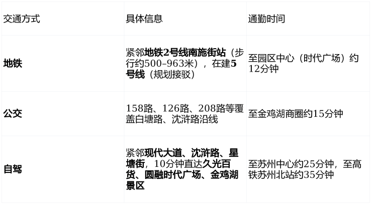白塘壹号地处园区湖东交通动脉核心,通勤效率远超同价位竞品: