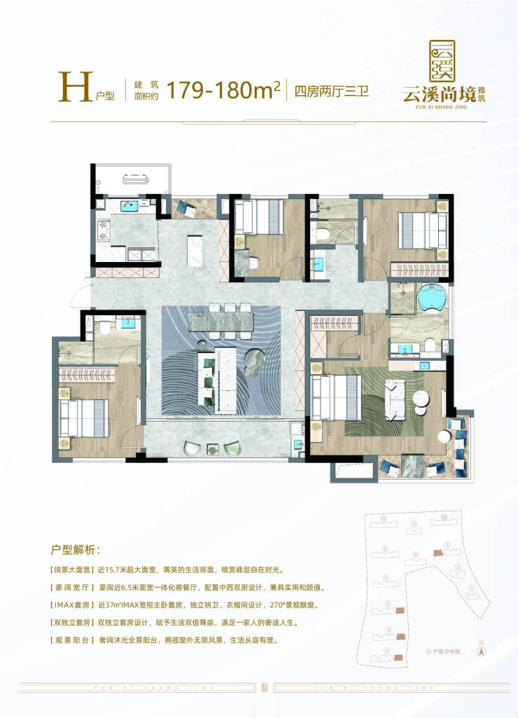 户型面积:主力户型为建面约113-231㎡的三居室和四居室