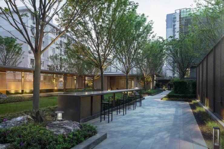 走过景观连廊、再探幽境,便是中心水院空间,地下会所与园林景观融为一体,内在山水,隔而不断,静坐水中一隅,携景邀客,洗净俗世铅华,休憩冥想,感悟岁月变迁。