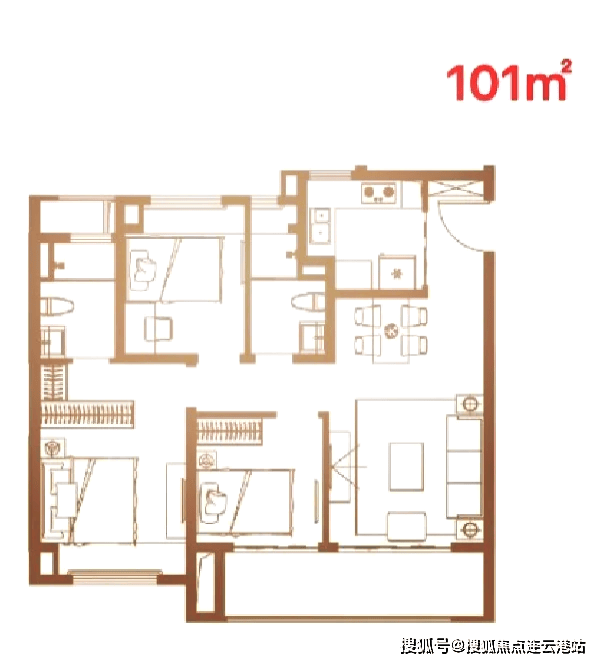 高层(23-26F):主力户型89-101㎡三居,均价约 19000-21000元/㎡