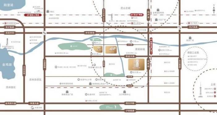 地铁K线(规划衔接苏州轨交11号线),中环南线、京沪高速环绕,6.5km直达昆山南站