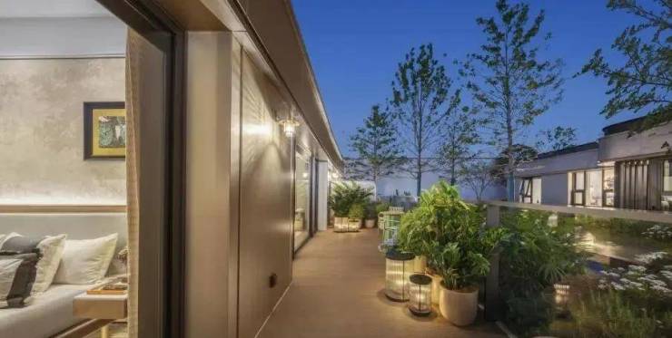 空中庭院不计入建筑面积,使得综合空间使用率达到约100%。与传统住宅相比,同样建筑面积下拥有更多的可使用空间,更多生活可能的延伸——可能是清晨的瑜伽平台,可能是午后的阅读角落,亦或是夜晚的观星台。这种空间价值的重构,让至高性价比藏于每一处与自然对话的角落。