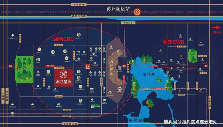 公路与高铁:5分钟接驳南环/北环高架,20分钟覆盖苏州主城区;距苏州园区高铁站约5公里、苏州火车站约7公里