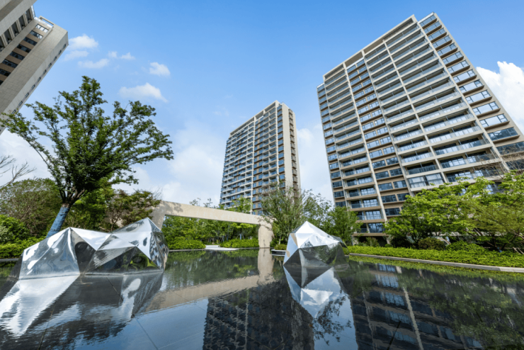 社区整体采用现代建筑风格,融入“雪山、湖泊、山谷、森林、村庄”五大自然元素,打造主题园林景观与生态慢行系统。中央景观面积约28,000㎡,最大楼间距达约100米,保障采光与私密性 。