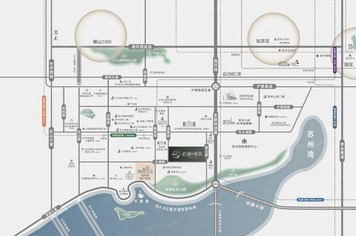 位置:苏州市吴中太湖新城核心区,五湖路与溪霞路交汇处,直线距太湖约260米