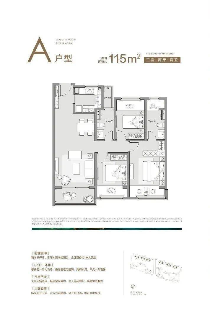 户型鉴赏:建面约105㎡ 三房两厅两卫