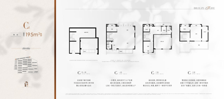 220㎡联排:三面采光,带独立庭院+地下室,层高5.4米,打造“有天有地”的理想生活场景;