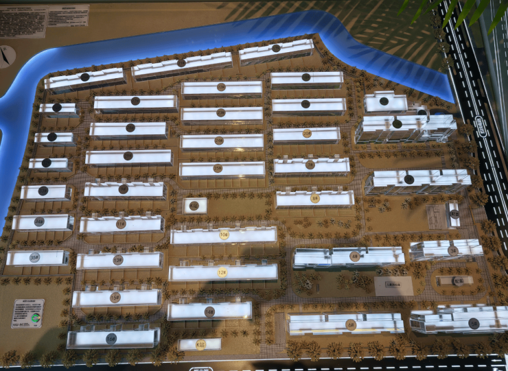项目内 : “双轴五巷十园”景观体系 , 中央水轴串联10处主题花园,20米宽生态河道环绕项目南、西、北三侧 , 约500–1000米原生水岸线,部分户型直面河景,推窗即水 ;
