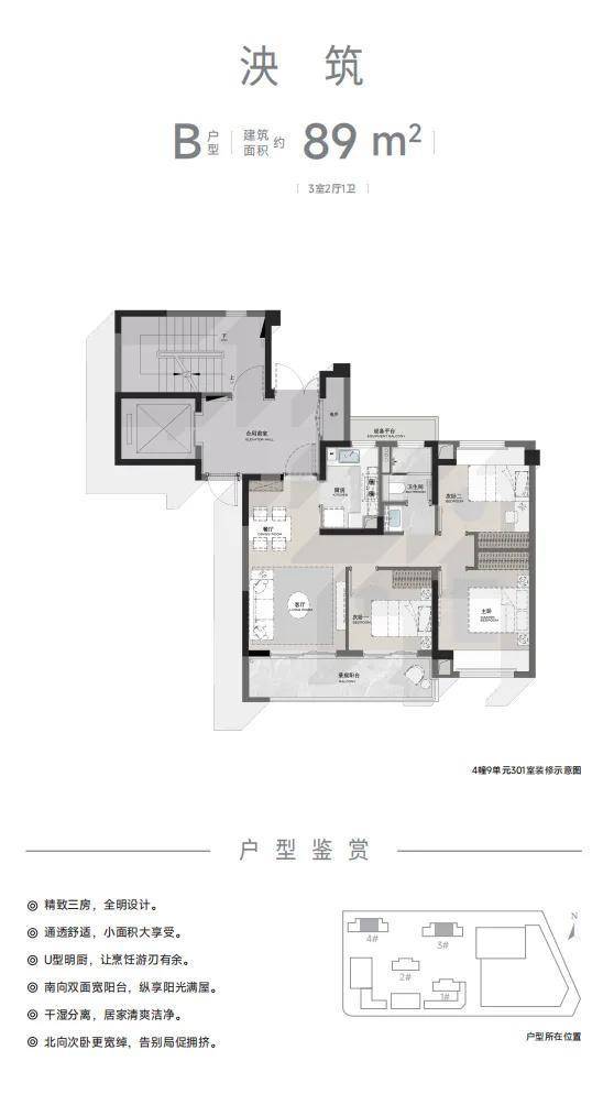 流银质感立面:南北立面均采用大面积一体板、搭配局部金属铝板(惠山新城首家),高窗墙比,三玻两腔玻璃,打造轻盈舒展的立面美学。