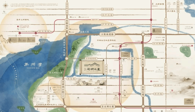 公路交通:直达上东太湖大道(连接苏州中环),常台高速吴江出口,苏州湾隧道(2026年通车)将大幅缩短与吴中区的通勤时间