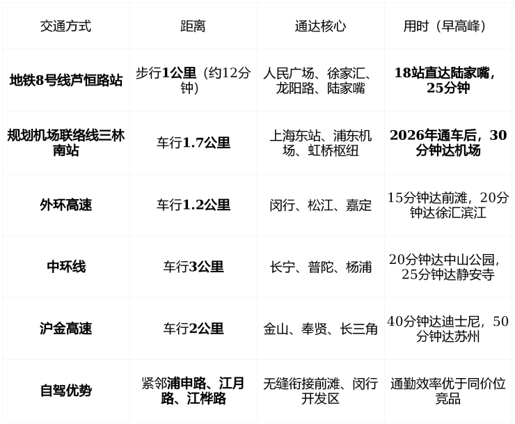 🚇 交通配套:前滩旁“三轨一环”通勤闭环,15分钟直达陆家嘴