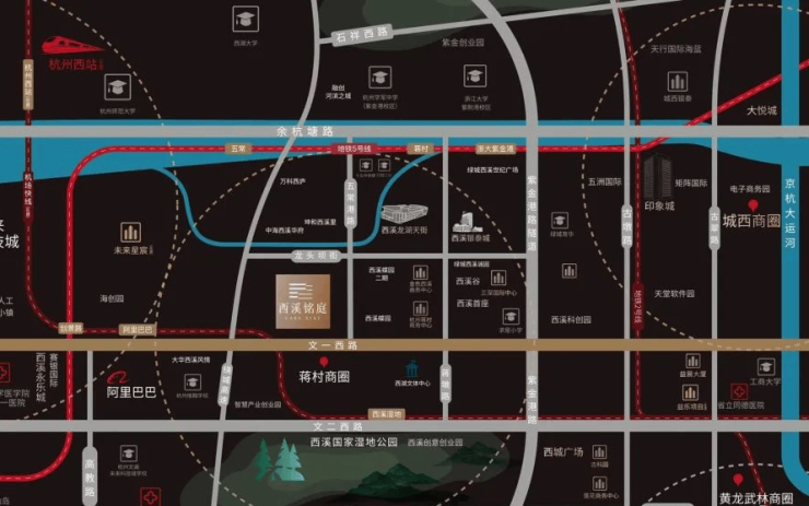 择址蒋村板块,地理位置优越。东接繁华的文教区,西临“宇宙中心”未来科技城,距离西溪湿地直线距离仅800米,闹中取静,拥享静谧诗意生活。