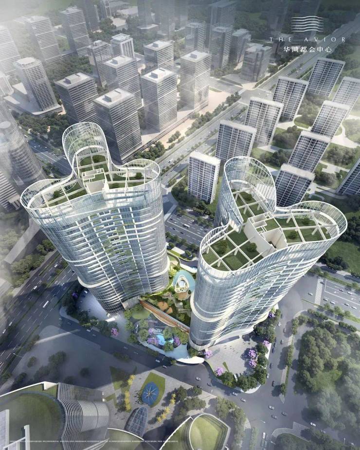 产品总建筑面积约9.5万㎡,一共规划两幢27层塔楼,均呈三叶草造型,商业大户型面积约430-450㎡。