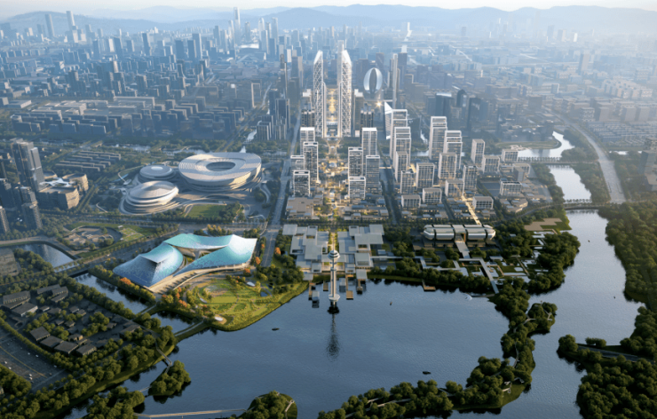 规划中世界级中轴线,全长2.5公里,总面积1.55平方公里。聚焦打造五大城市功能板块=市民公园+国际商务区+艺术文化商业街区+未来总部区+国际滨水文化区。由国际知名的福斯特事务所中标设计,其建成后将成为杭州城市未来的新地标