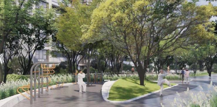 全龄活力社区大家东望,融合 “水、光、花、风” 元素的园林,匹配各年龄段休闲需求,开启美好日常