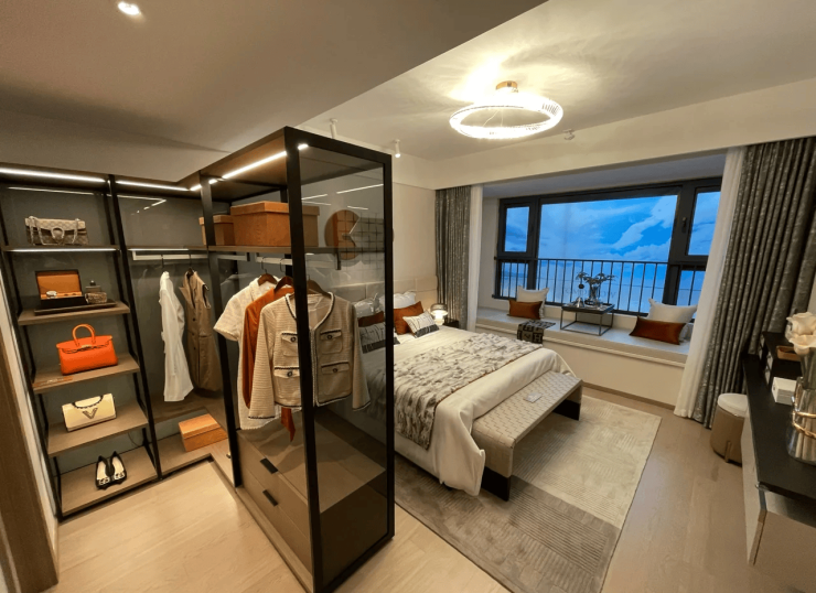 148㎡四室两厅两卫:横厅布局(开间7.3米),设南北双阳台,子母门玄关,主卧带独立卫浴