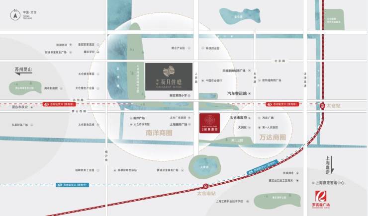 交通配套:紧邻人民北路,依托规划中的 S339 高架,将形成 “一轴双动脉” 的立体交通格局,可快速连接娄江新城、昆山及苏州。1 公里内有京仓大桥站、北京路人民路站等 11 个公交站点,可乘坐太仓 111 路、太仓 136 路等,步行 1.3 公里可达太仓汽车客运站,可直达上海、苏州等长三角核心城市。此外,项目接驳沈海高速入口,自驾可畅达上海嘉定、昆山花桥。