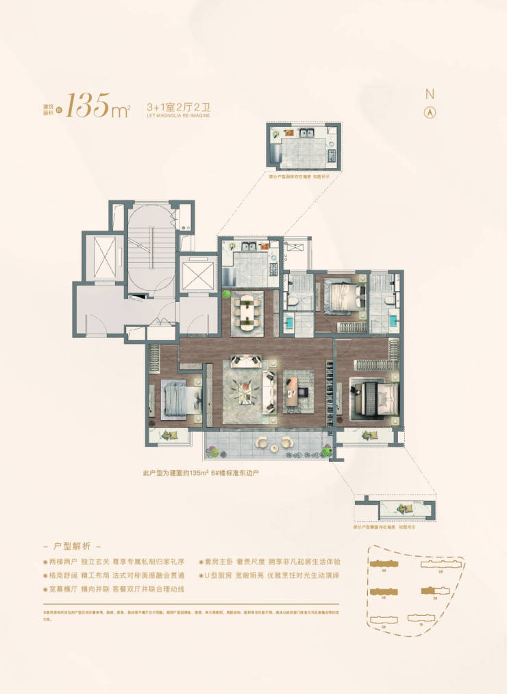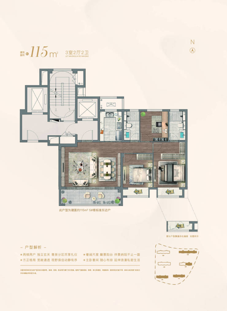 户型面积(㎡)核心特色参考总价115㎡三室两厅两卫南向三开间,3.5米客厅面宽约185万135㎡三室两厅两卫南北双阳台,主卧套房设计约225万
