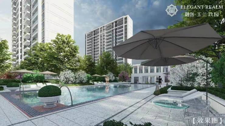 项目承袭融创玉兰系法式基因,以"巴黎/流动的盛宴"为景观叙事主线,将古典法式美学与现代生活需求相融合。建筑采用米白暖色系立面,糅合高级灰元素,呈现新古典主义风格,既保留法式建筑的对称庄重,又通过简化线条增强现代感。