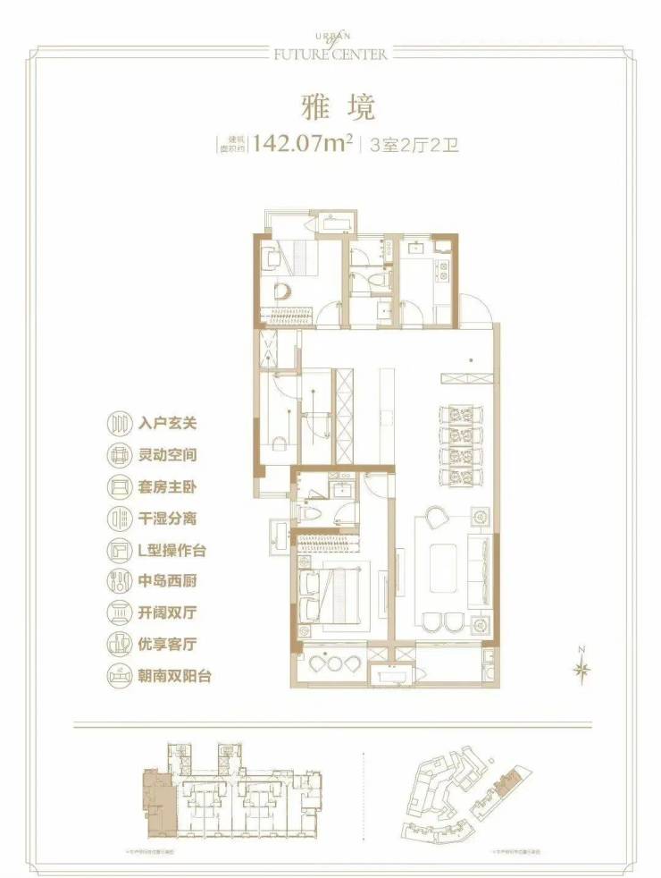 【建面142㎡3居】330.0-340.0万-分布于四期16号楼 ,4梯6户,层高2.90米,总楼层49F