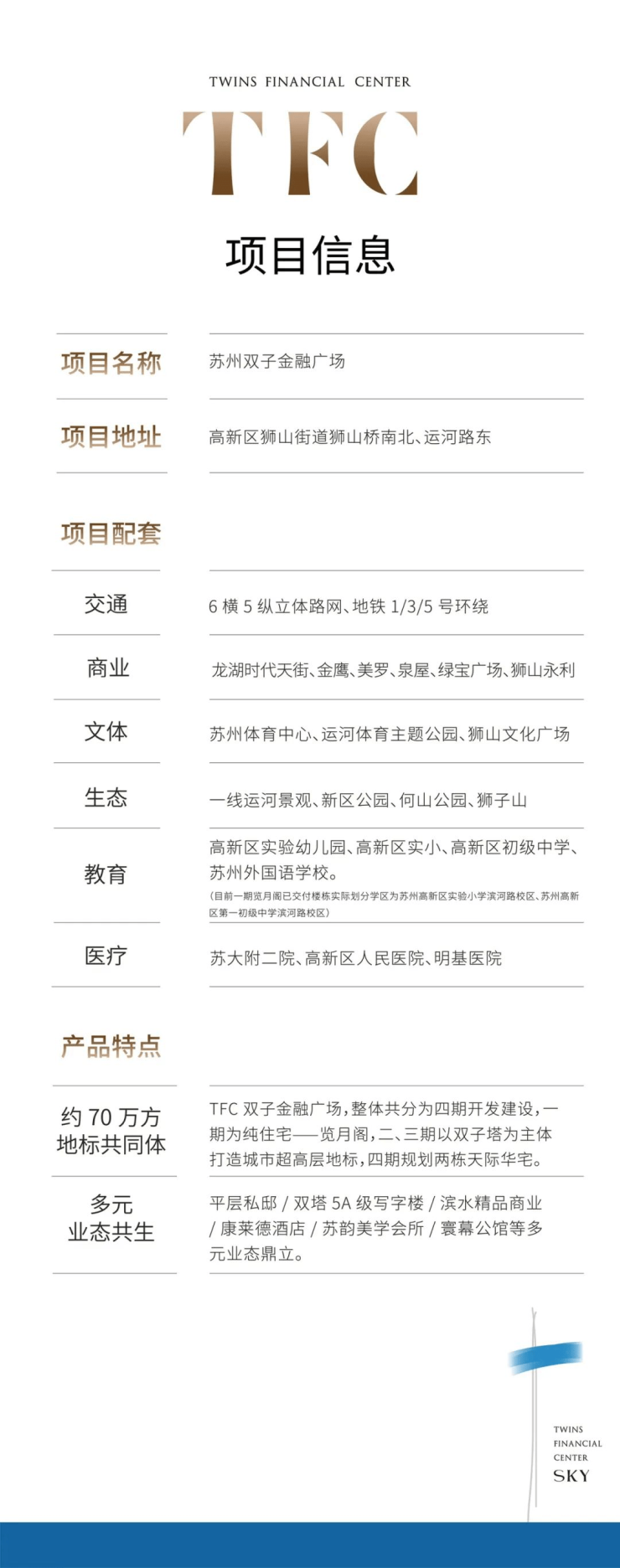作为约70万方TFC苏州双子金融广场的住宅组团之一,览月阁不仅仅是一个小区,更搭乘着一座正在成熟的大城。如今,金融双子塔已全面封顶,城市天际线正被重新书写。这座汇聚了高端住宅、商务办公、奢华酒店、潮流商业等多元业态的地标综合体正以磅礴的兑现力,让览月阁的业主,成为这一切利好的分享者。