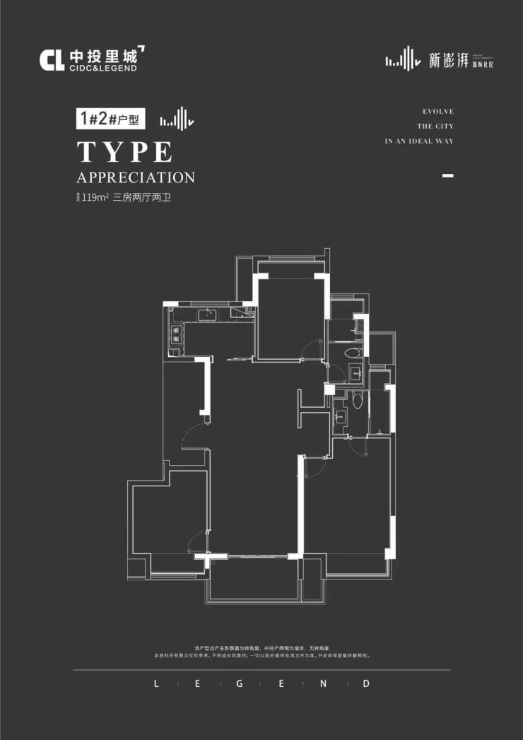 【建面119㎡3居】170.0-180.0万-分布于2号楼 1号楼 ,2梯2户,层高2.90米,总楼层11F
