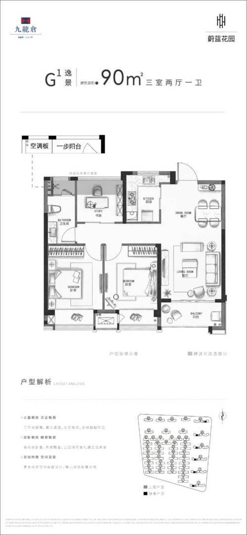 户型面积(㎡)参考总价特点三居室90;90万-100万全明格局,南向主卧+飘窗设计
