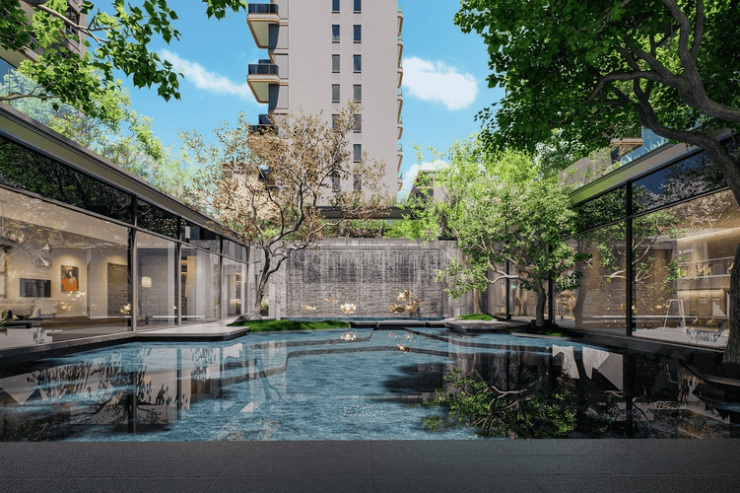 以“江南山水”为灵感,融合现代景观语言,实现“一户一花园、一步一景致”;